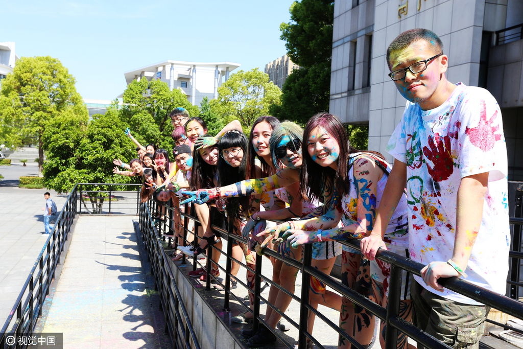 2015年5月21日,浙江工商大学艺术学院毕业生拍摄“七彩”毕业照。