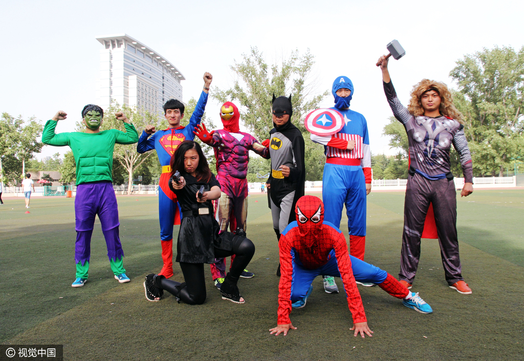 2015年6月5日,河南郑州,河南农业大学体育学院的一群毕业生扮演电影《复仇者联盟》中的超级英雄角色拍摄主题毕业照。 2015年6月5日,正值毕业季,河南农业大学体育学院的一群毕业生扮演电影《复仇者联盟》中的超级英雄角色拍摄主题毕业照。