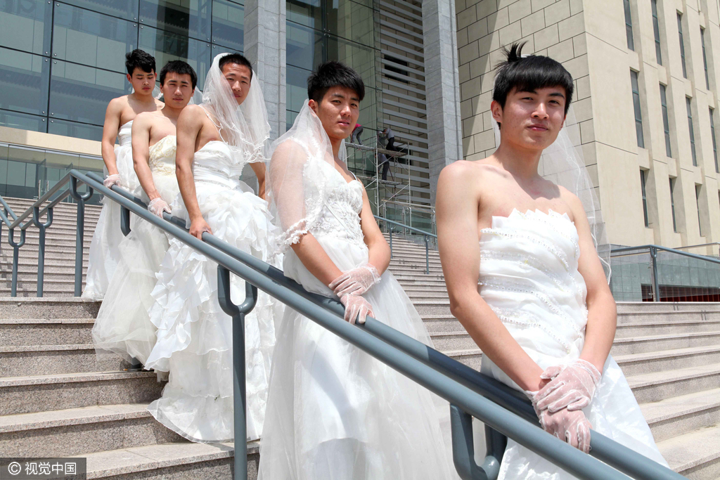 2015年05月20日,河南省商丘师范学院男学生拍摄婚纱毕业照。