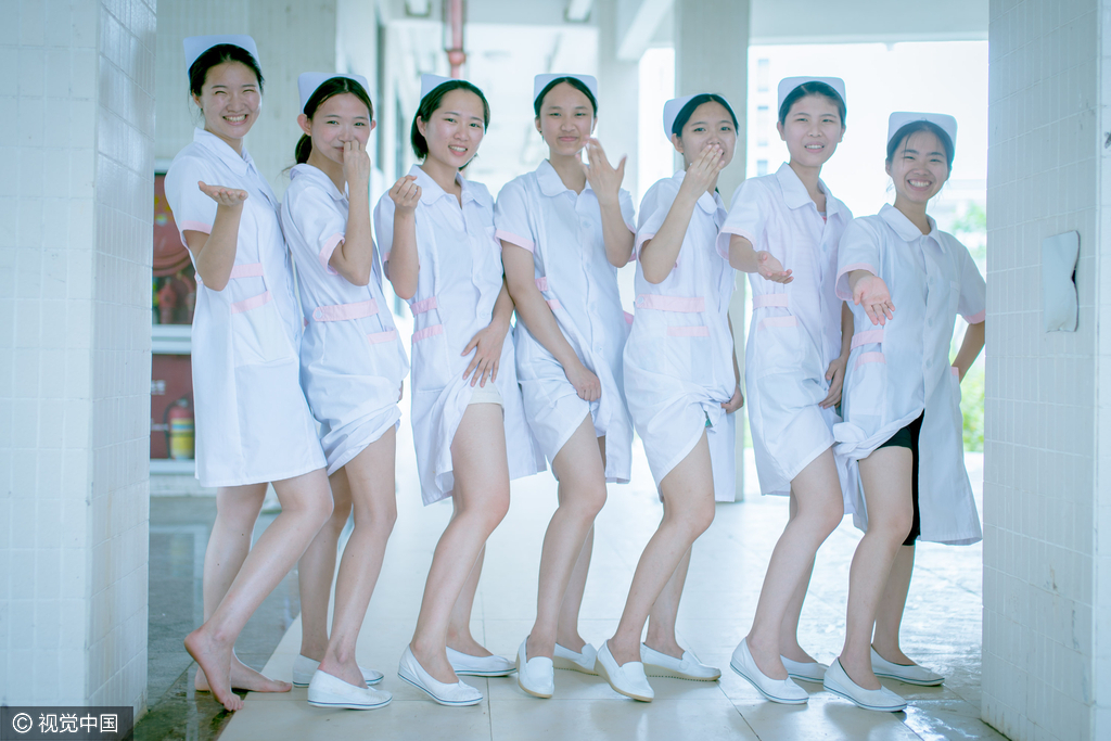 2014年05月25日,广东省惠州市,盛夏来袭,又到一年毕业季。惠州卫生职业技术学院的校园内,随处可见护理专业的女生们身着复古学生服、护士服合影留念。汗水濡湿的青布衫、上下翻飞的塑料扇子、卷起的护理学教科书、黑裙膝下的丝袜高跟,那些被割裂的历史与现实在此古今交汇,构成了一幅幅有趣的画面。