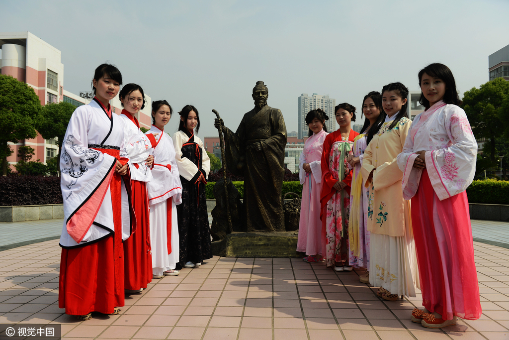 2014年6月22日,又到毕业季,青岛科技大学视觉传达专业的学生穿上汉服拍摄毕业照,缅怀即将逝去的大学时光。