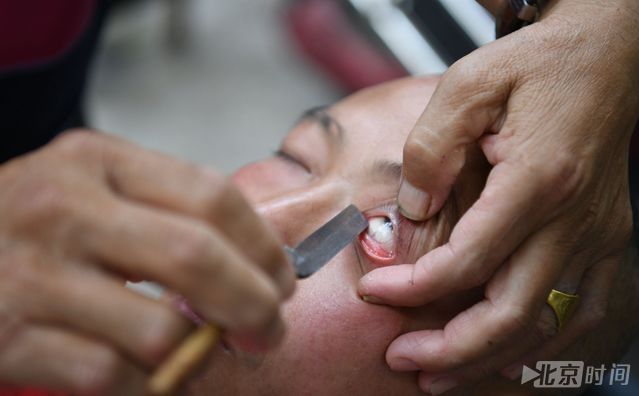 老人用刀片给人洗眼睛 体验者都是胆大的