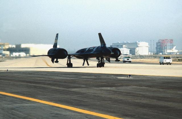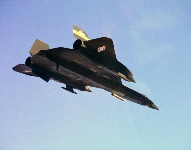 YF-12截击机的尾部视角。1965年5月14日,美国军方准备为防空司令部采购93架这种飞机,并且其编号已经定位F-12B,但最终越南战争占据了太多的资金,计划未能成型。