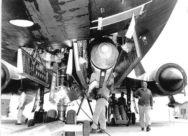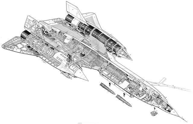 机腹特写。该型飞机的航程为4800千米,由于速度超过3马赫,所以即便是苏联最先进的轰炸机,它也能够追上。