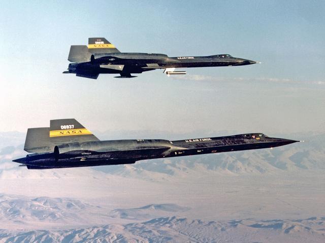 双击编队的YF-12截击机,这种飞机的设计目的是拦截苏联的轰炸机,使本土免于遭受轰炸机的核打击。