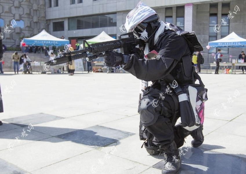 4月10日上午,湖北工业职业技术学院动漫展在该校举行,吸引十堰多所高校及高中和初中动漫爱好者参与。据了解,动漫展是湖北工业职业技术学院2016年校园文化艺术节的系列活动之一。摄影/刘成臣 图为动漫展现场的cosplay。