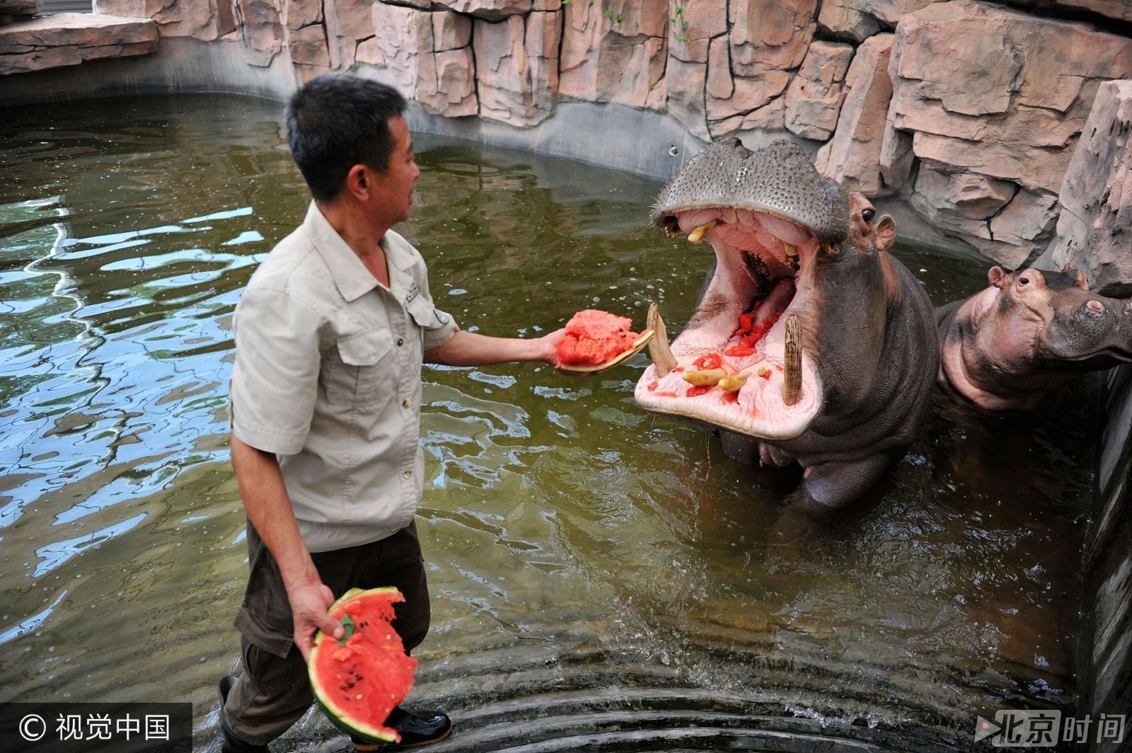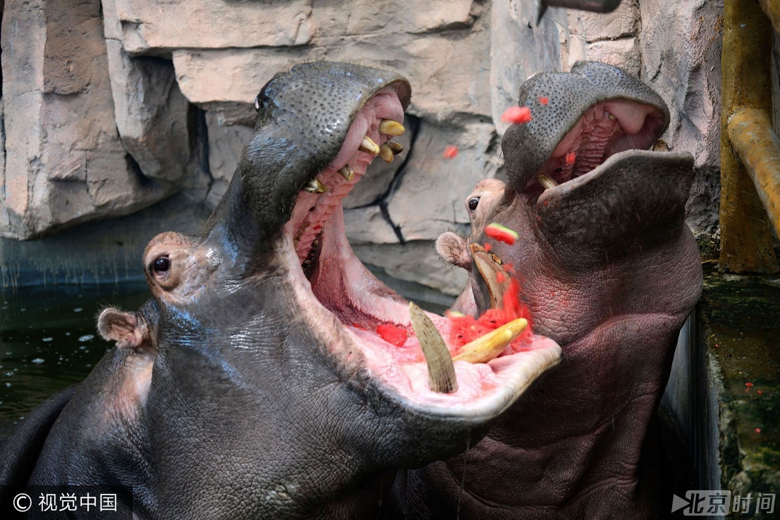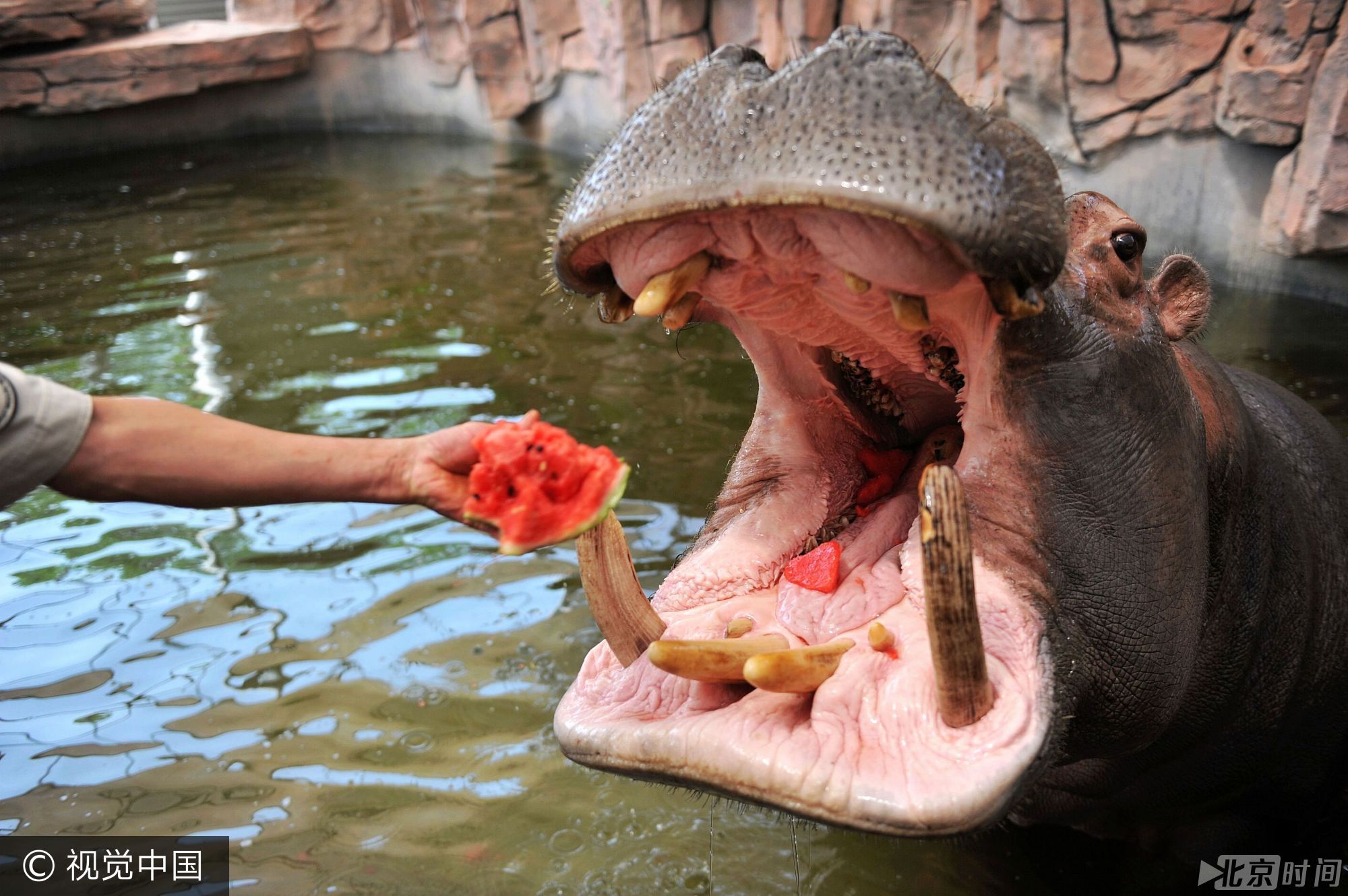 活久见!动物园河马泡水池啃西瓜 尽享夏日清凉_北京时间