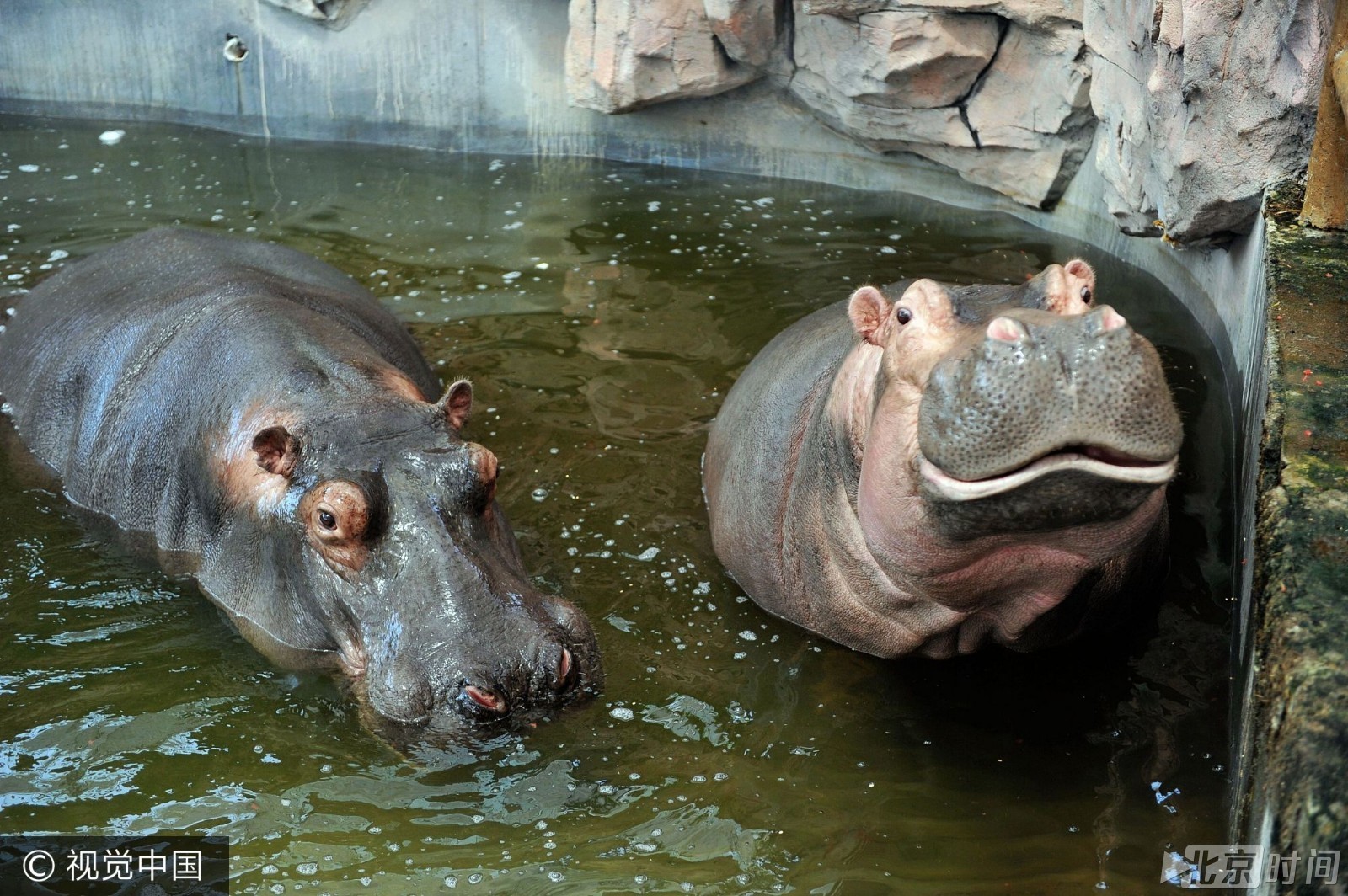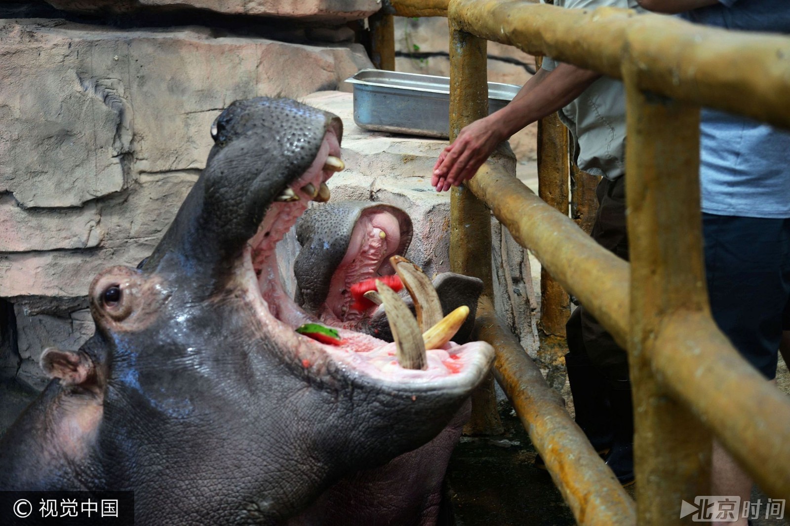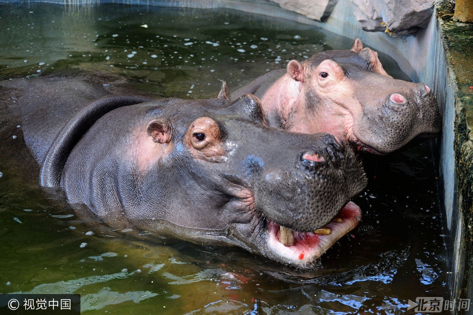 活久见!动物园河马泡水池啃西瓜 尽享夏日清凉_北京时间