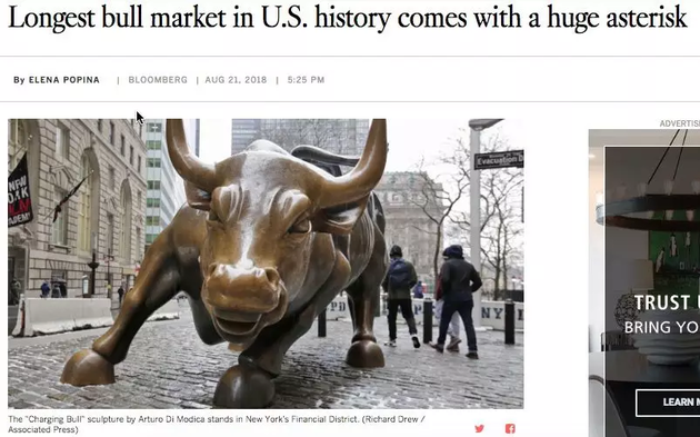 截至美股8月23日收盘,本轮始于2009年3月9日的牛市(3453天)已经成功超越上世纪末期,成为美股历史上最长的牛市。