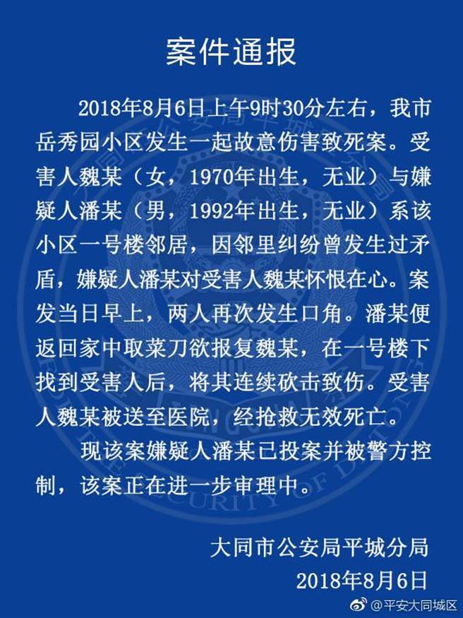 近日山西发生一起惊悚砍人事件,一名妇人因与男邻居争论漏水问题,不料惨遭辱骂砍杀,最後活活遭男邻居砍死,命丧刀下。