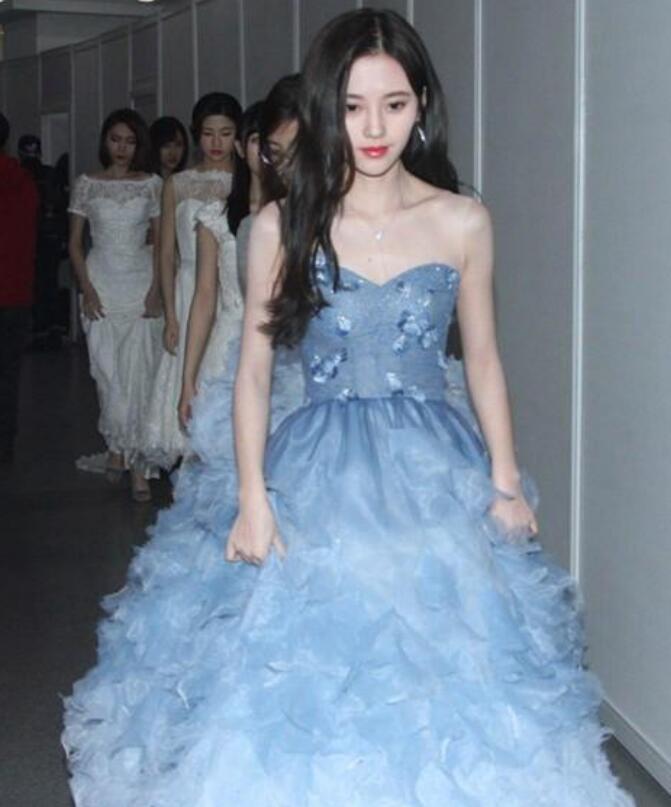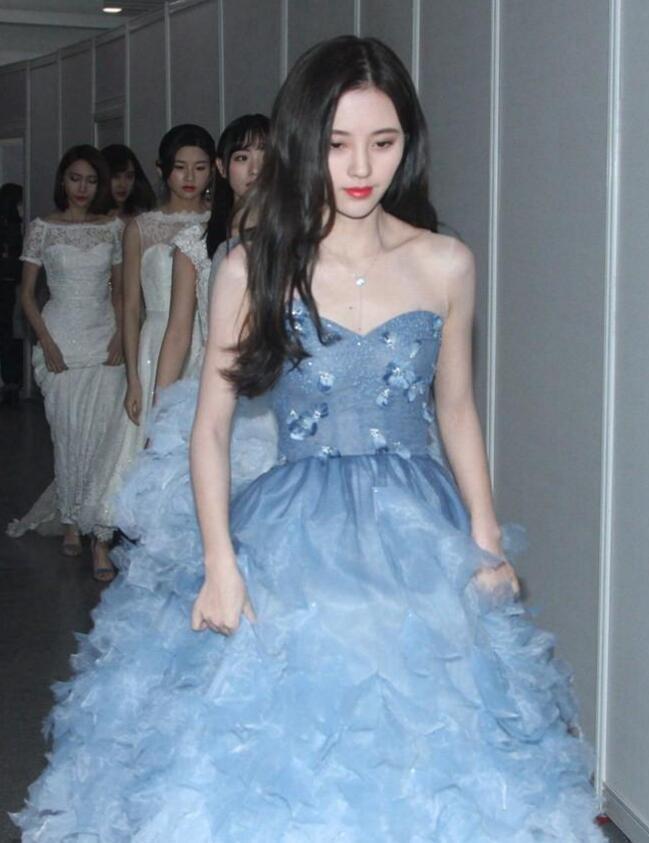 近日,鞠婧祎现身某活动,当天,鞠婧祎身穿蓝色低胸长裙性感十足,而妆容确实十分的精致。