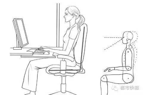 健康的坐姿应该是保持脊椎直立不驼背。长期在电脑前工作的人,适当抬高电脑显示器,尽量不长期“伏案”工作。上身挺直,胸离开书桌10厘米,使胸背肌张力均衡,两腿平行自然放下,脚掌自然放置。