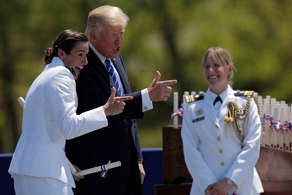 当地时间2017年5月17日,美国康涅狄格州新伦敦,美国总统特朗普出席海岸警卫队学院毕业典礼。
