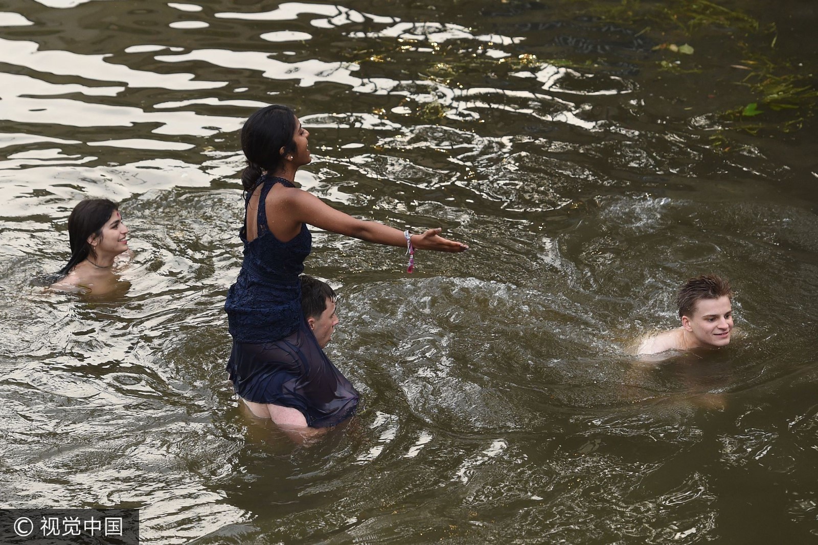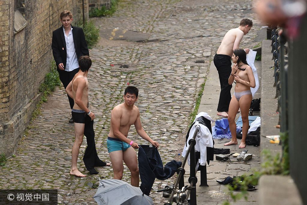 当地时间2017年6月20日,英国剑桥,剑桥大学学生举行"五月舞会" ,同学们集体脱去衣服,跳进剑桥大学湖区,裸体游泳,场面激情四射,甚是辣眼。