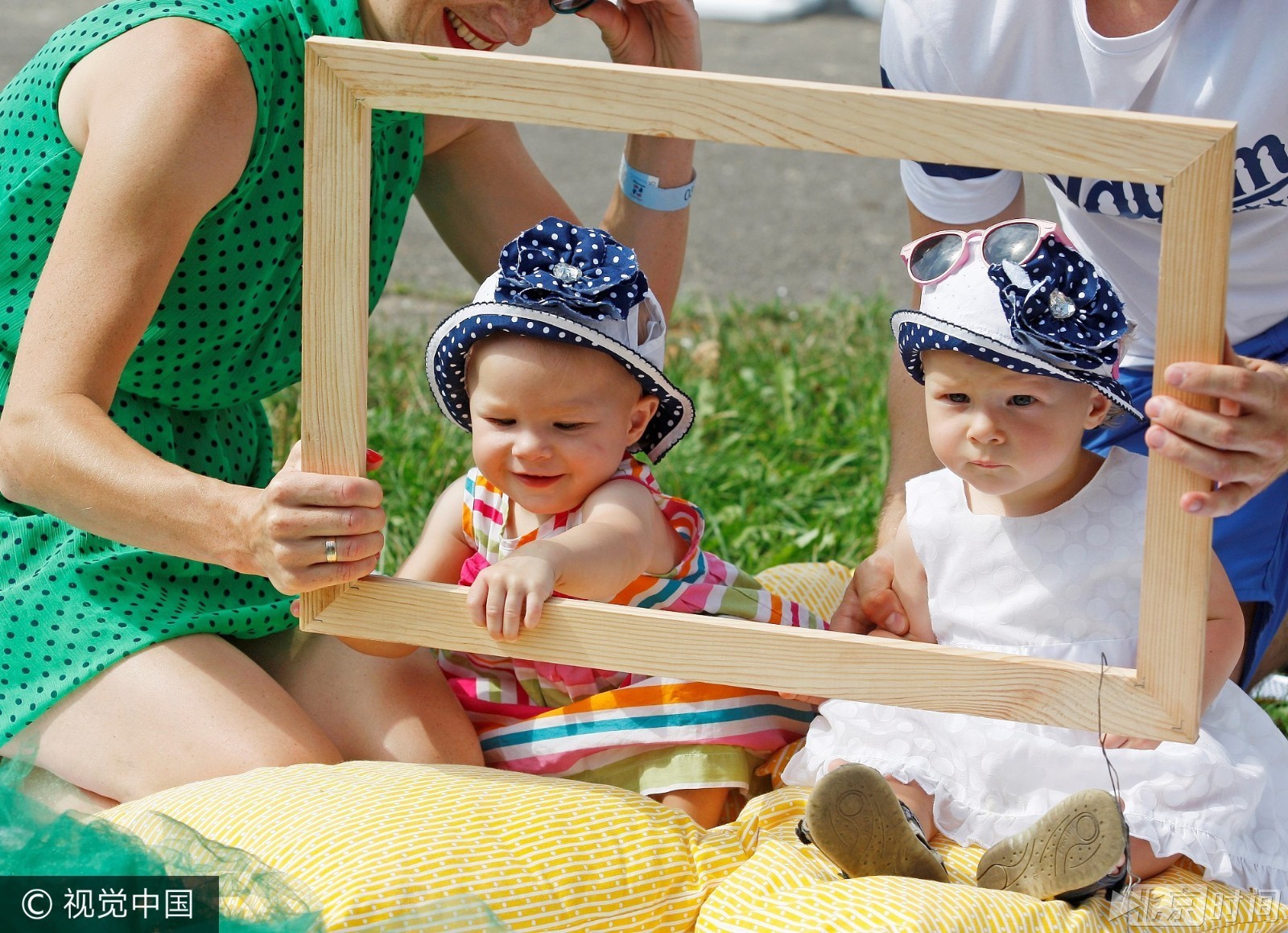 乌克兰基辅,双胞胎现身快闪活动“双重快乐”,庆祝国际双胞胎节。