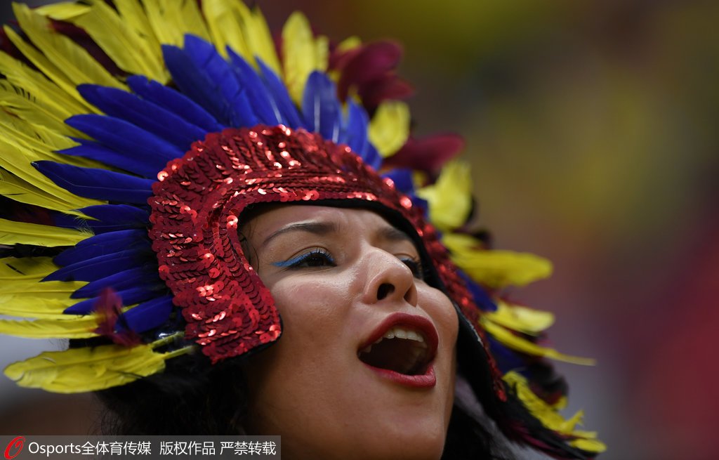 世界杯25日美女球迷:哥伦比亚美女欢呼。