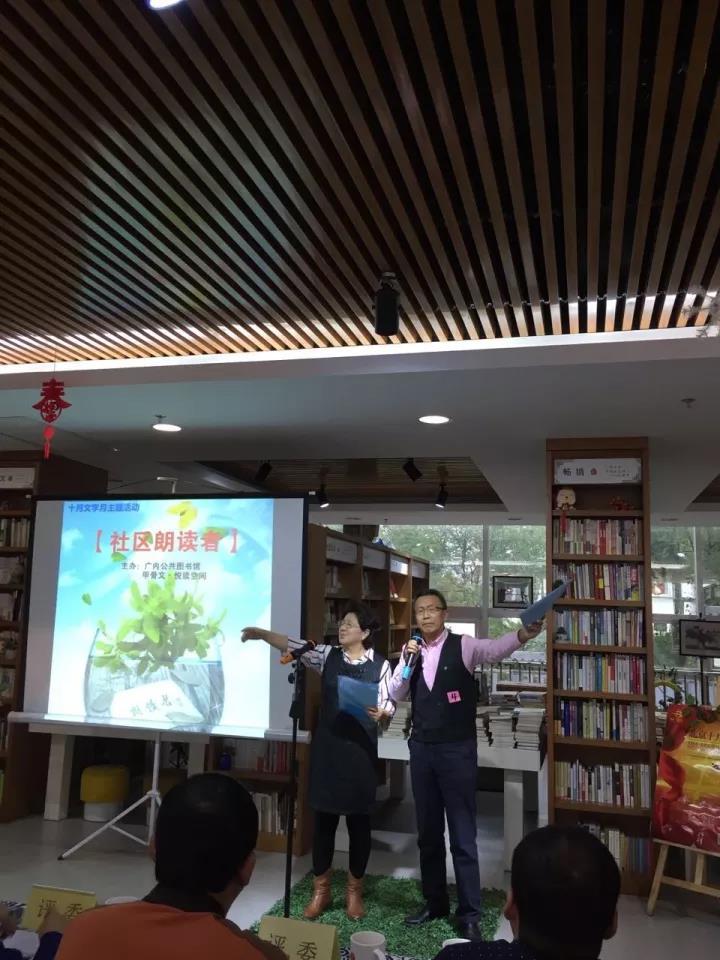 10月22日下午,第二届北京十月文学月重点阅读活动“社区朗读者”在广内公共图书馆——甲骨文·悦读空间隆重举行。
