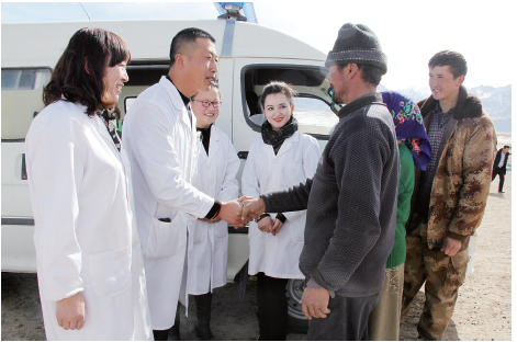 太阳从白雪皑皑的昆仑山上缓缓升起,洁白的雪点缀着水墨色的山峰,悠远而宁静。远山下,几个洁白的身影让草场喧闹起来。