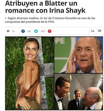 在布拉特辞职后,除了腐败丑闻外,关于他的花边绯闻也被曝光,其中最惊人的无疑是西班牙媒体《世界体育报》,该报爆料称布拉特与多位女人有染,其中就包括C罗的前女友俄罗斯超模伊莲娜。
