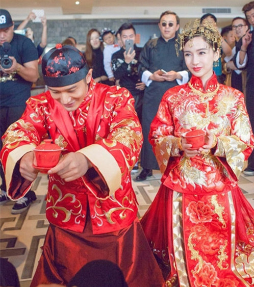 在最近几年,改良版的中式婚礼礼服以其华贵而又不失时尚的特色越来越受到中国新人尤其是明星的喜爱。