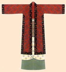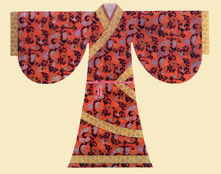 中国的服饰文化历史悠久,至周代已形成了一套完整的服饰制度,服装形制是“上衣下裳”,色彩遵循“玄缥制度”,“玄"色是黑中带红;“缡"色是黄中带红,象征天地 的色彩,源于古人对天地的崇拜与敬畏。