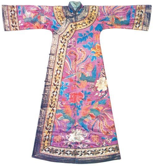 清代的礼服受到少数民族的影响,新娘通常穿红地绣花的袄裙或者旗袍,外面借穿诰命夫人专用的背心式霞帔,头上戴簪红花,拜堂时蒙上盖头,新郎通常青色长袍,外罩绀色马褂,戴暖帽并插金色花饰,拜堂时身披红帛。
