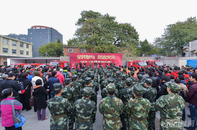 11月8日上午,东城区在世纪天鼎购物广场隆重举行以“全民参与、防治火灾”为主题的“119”消防宣传月启动仪式。