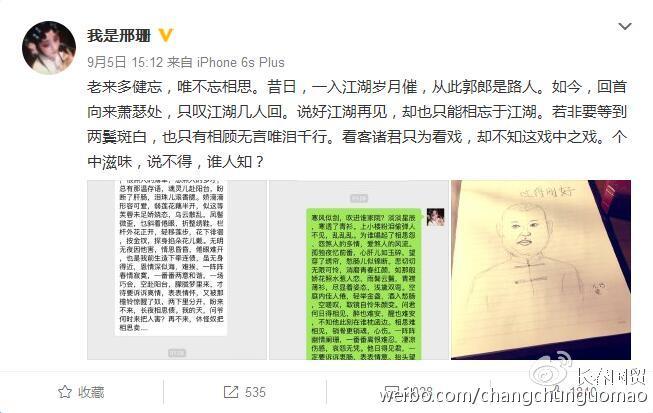 9月5日 13:09 ,曹云金写长文爆出“女记者”绯闻引来大家热议 ,而在曹云金发文后两个小时15:12,“我是邢珊”就在微博上抄了首诗,“从此郭郎是路人”并配上了一幅郭德纲的画像,似乎在告诉大家点儿什么!居心有点明显噢!