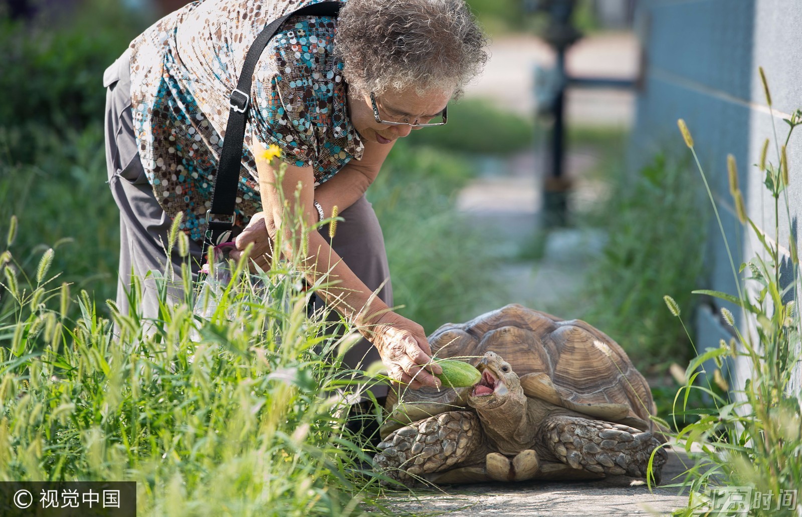 “苏苏”是附近家喻户晓的“明星”,每次老人带“苏苏”出门都有百分百的回头率。