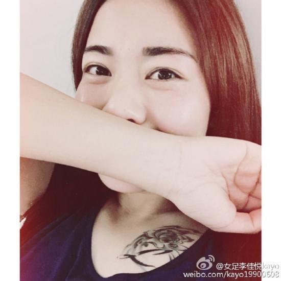 再来一张女足姑娘李佳悦美照,在足球赛场上常见男足球员纹身较多,几乎遍布,但女足相对较少。今天有幸扒一扒女足姑娘的纹身,欣赏完这么多,你一定有话要说,毕竟女足姑娘不光球踢得漂亮 连身上的纹身都美得不要不要的!!