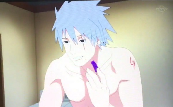 在《火影忍者》动画版最新连载影片中,其中角色“旗木卡卡西”假扮成别人上街,过程中还差点被阿凯识破,最后回到家卸下放大片,并脱下褐色假发,裸上身秀出素颜模样,而这也是《火影忍者》自1999年连载起,相隔17年后卡卡西第一次在动画中脱下面具,展现其真面目。