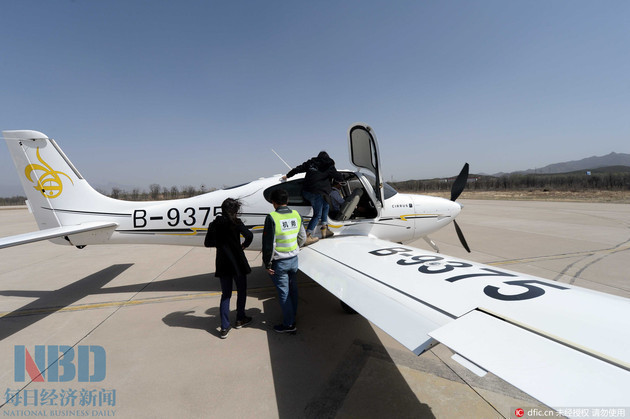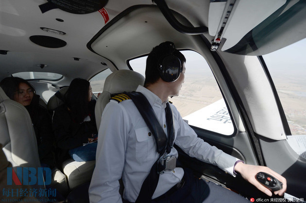 2016年4月13日,中国北京,由滴滴试驾推出的飞机试驾试乘服务在北京开启,部分用户已经率先乘坐飞机领略了长城风光。