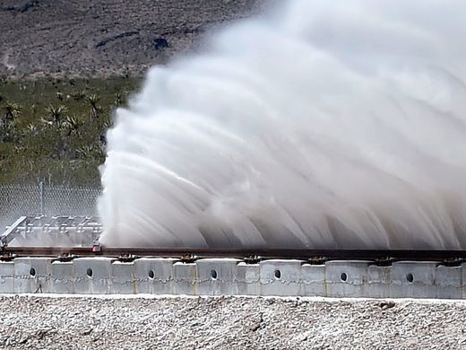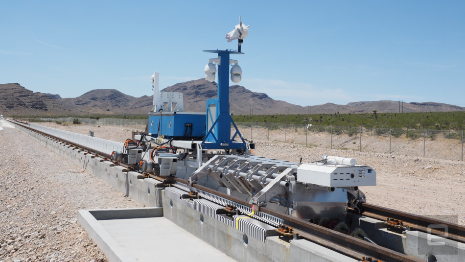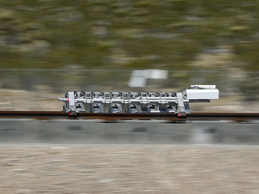 超级高铁公司Hyperloop One在拉斯维加斯北部的沙漠中测试了超级高铁的推进系统。
