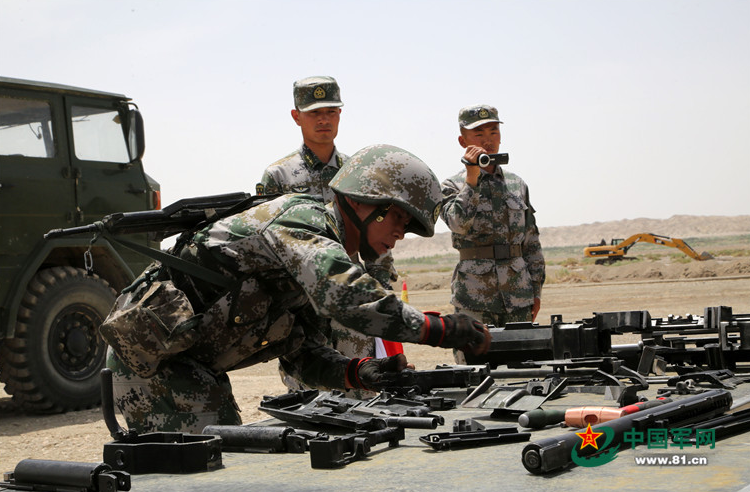 日前,我陆军参加“国际军事比赛—2017”的“修理营”“军械能手”项目的新疆军区某师修理营官兵,依托库尔勒某训练基地场地组织官兵进入赛前强化训练阶段。
