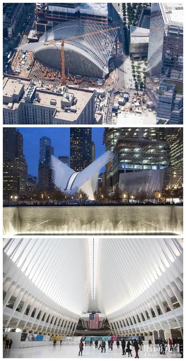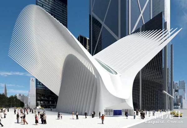 在9.11袭击中倒塌的世贸中心旧址之上,一只白色的钢铁大鸟正在起飞——TheOculus世贸中心中转站,耗资近40亿