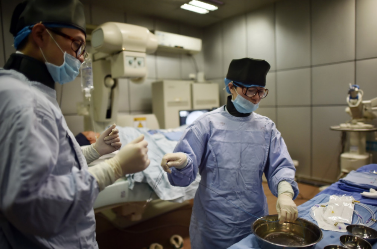 全副武装的刘亚和助手,准备进入手术室,开始做介入手术。