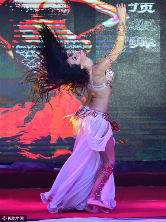 12月16日,第四届东方肚皮舞大赛,吸引中外选手参加,舞女女郎扭动性感蛮腰,秀傲人胸器“波涛汹涌”。