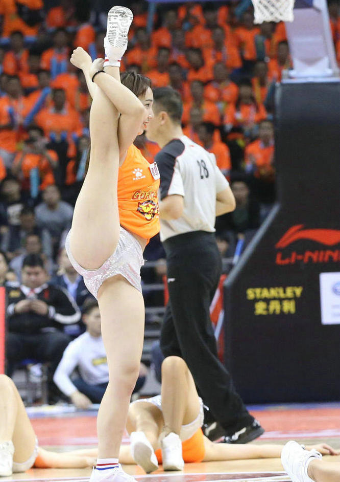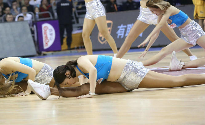 广东队在主场以106-100苦战击败领头羊广厦,啦啦宝贝们也格外卖力,性感热舞助阵,一字马侧空翻大秀绝活。