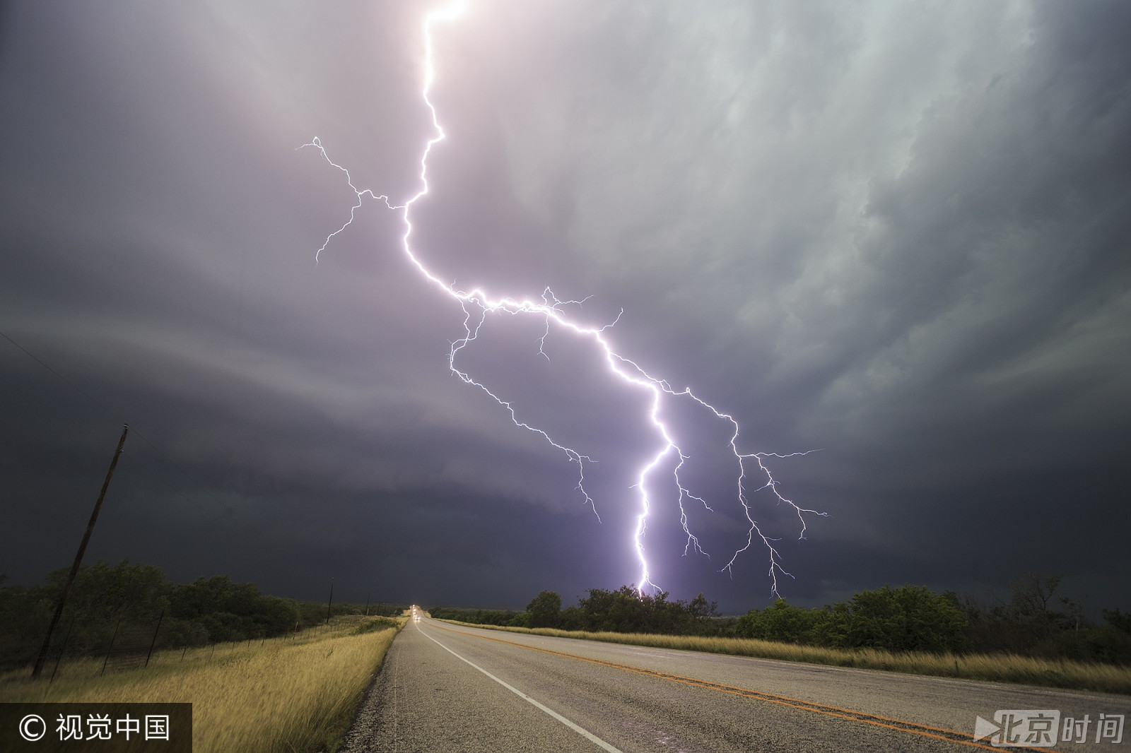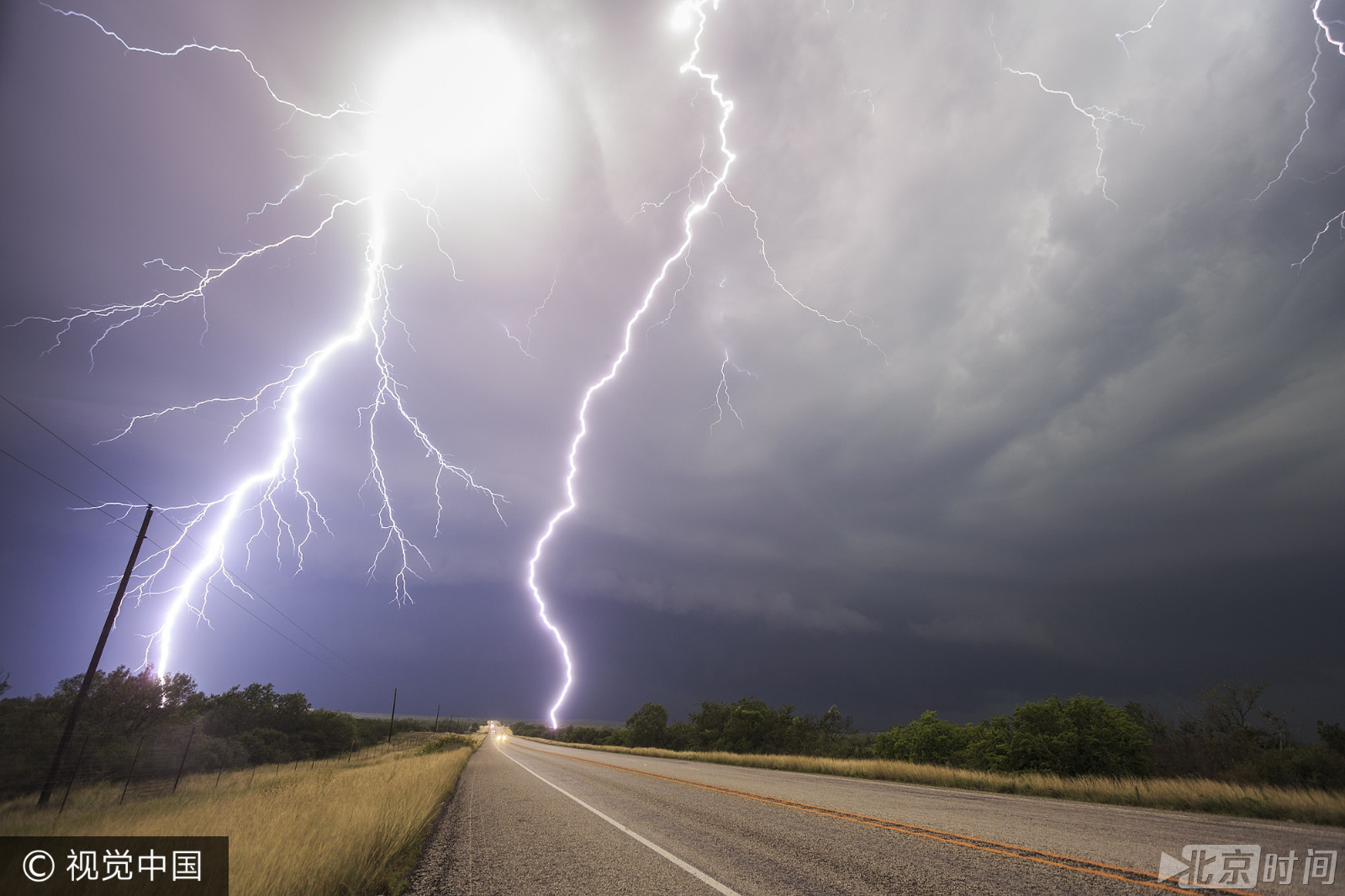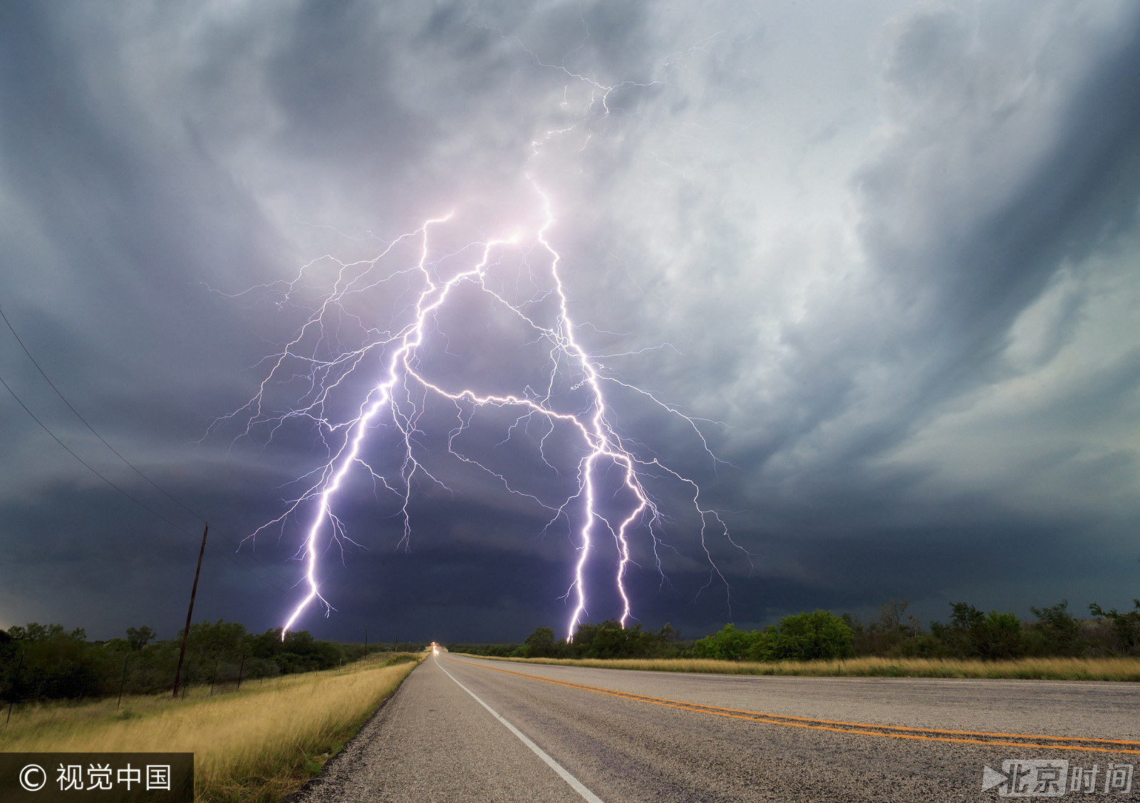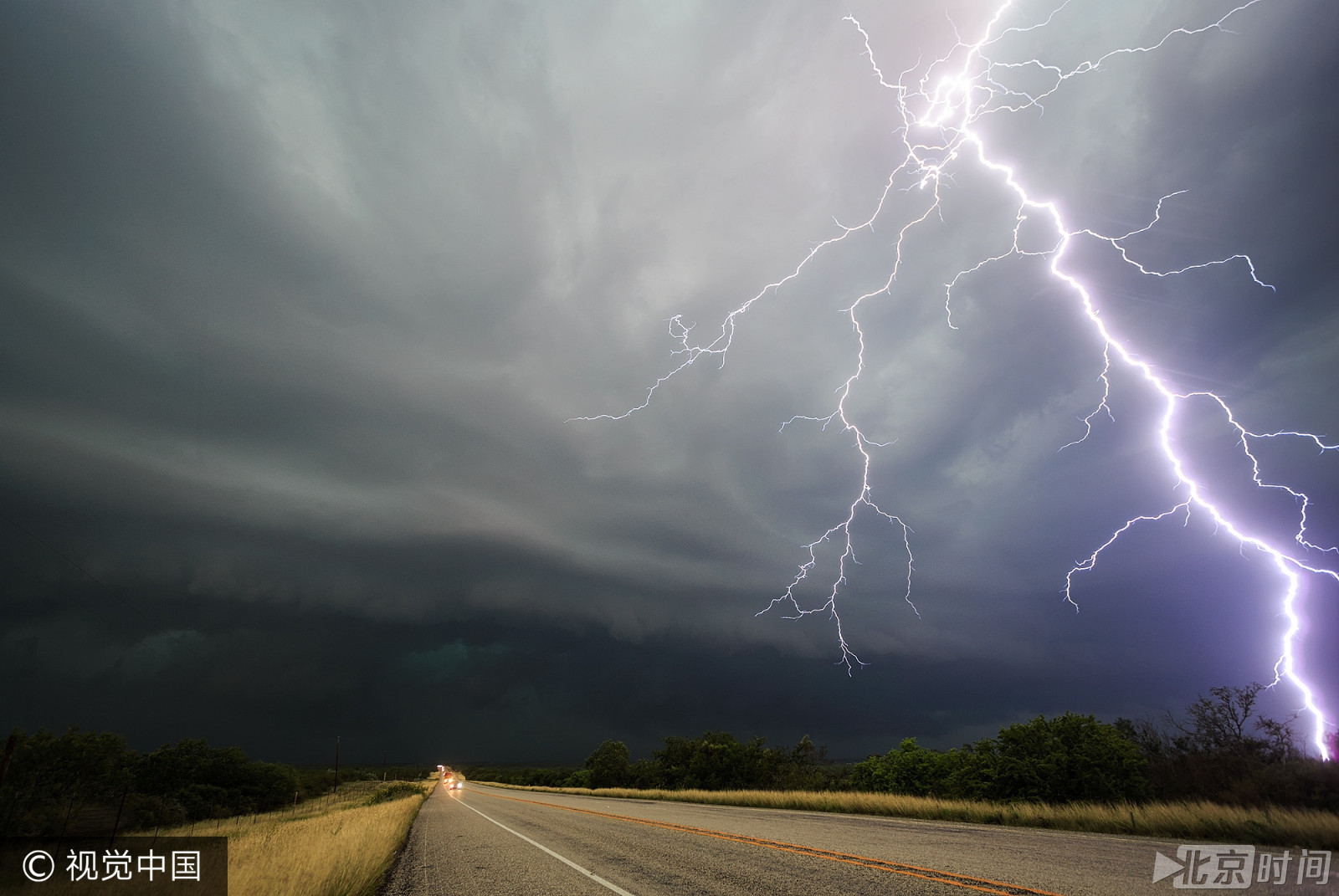 2017年7月13日讯(具体拍摄时间不详),美国德克萨斯州维尔,36岁的Marko Korosec在猛烈的暴风雨的中心地带拍摄到令人震惊的闪电景象,而当时闪电离他的车子仅仅只有不到20米远(65英尺)。