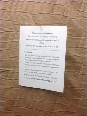 "嗨,中国人,你知道打嗝和放屁是不道德的吗?哦我们知道,在你们的文化里不是,哎哟喂!"