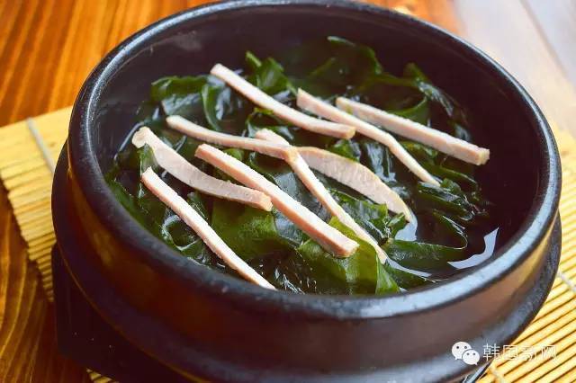 喜欢看韩剧的人们一定会注意到,韩国人过生日时,除了要吃生日蛋糕、送生日礼物之外,还要喝上一碗海带汤(미역국)。其实,海带汤本身与长寿、健康等吉利的寓意无关。而是为了对怀胎十月辛苦养育自己的母亲表示敬意,表达对母亲的感激之情,纪念母亲生育的辛苦。因为,在注重食疗的韩国,海带汤原本是韩国孕妇产后的补品。因其含有丰富的钙质、维生素、蛋白质等等,对孕妇的产后恢复和接受母乳喂养的孩子的健康生长都是有好处的。