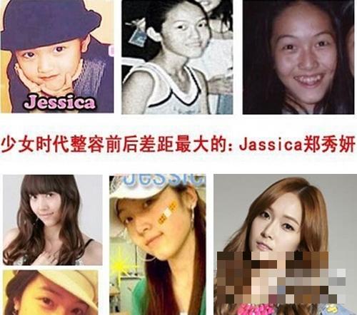杰西卡被指是少女时代里整容前后差距最大的,但是人都有丑照嘛,看小时候照片,觉得还是挺美人胚子的。