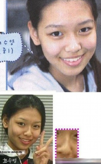 崔秀英整容前有点像菲律宾人,前后差别倒也不算很大。