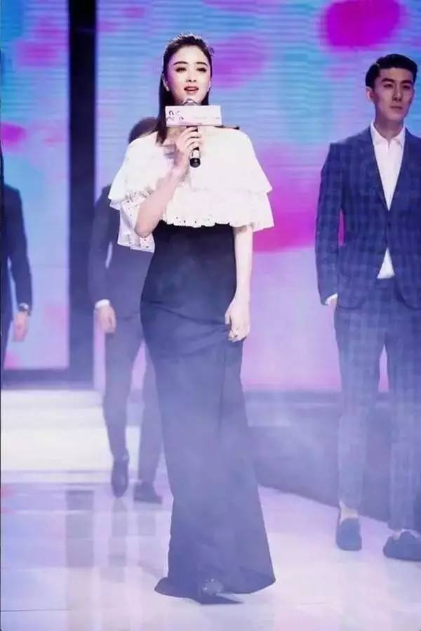 蒋欣同样也穿一字肩的礼服,露出美丽的锁骨,性感又甜美,包臀完美的展示婀娜多姿的好矮身材。