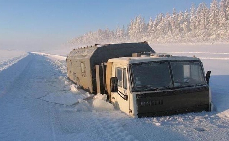 这里的卡车要一直开动,不然熄火后就很难了发动了,一旦遭遇大雪,后果很悲剧。