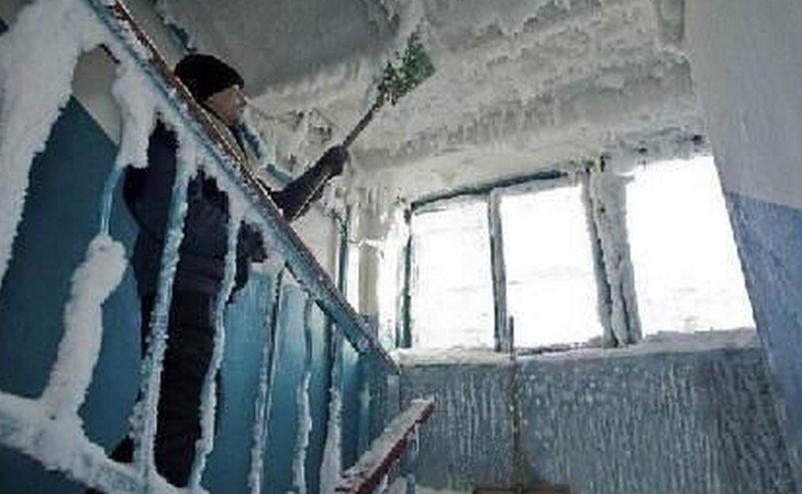 室外被冰雪覆盖,那么室内呢?其实也相差不多,他们的房子大多是木质结构,结果室内也成了冰雪世界,这得多冷啊。