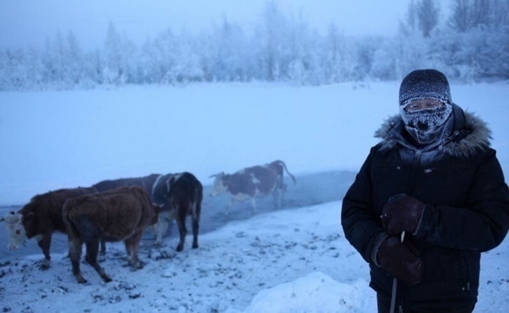 生活在奥伊米亚康的居民若要外出,除了眼睛之外,其他地方都要做好保暖措施。