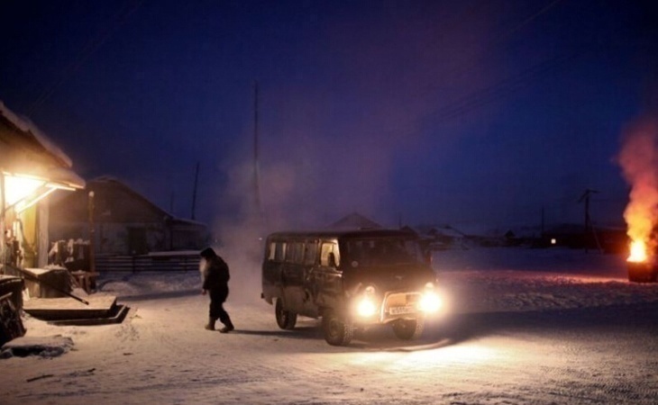 这张照片展示了通往奥伊米娅康村的“白骨之路”在零下50摄氏度的夜间情景。