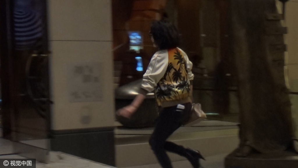 刘嘉玲匆匆急步,走入文华酒店并失去芳踪。