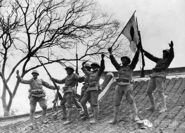 日军站在屋顶欢呼。